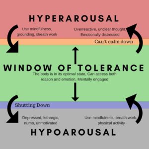 One side of the window of tolerance is hyperarousal, which happens when the nervous system is over-activated.